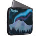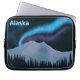 Lila och blått nordlig ljus glöd över berg täckta av snö på en kall kväll i Alaska