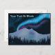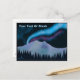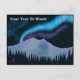Lila och blå norrsken lyser över snötäckta berg på en kall natt i Alaska. Lägg till din egen text.