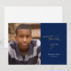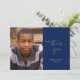 Det här minimalistiska studenten-tacket som du använder för kortet innehåller ett stort skript för foto och avslappnad. Mot en marin blå bakgrund står "Tack" skrivet i det moderna skriptet guld, med student namn och studenten under i vitt. Lägg till ett stort foto av den nya graden till lämnat. Baksidan är tom och kan hantera ytterligare foton eller en anteckning om personligen till mottagarna.