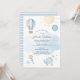 Fira det stundande ankomsten av lilla ettan med vår charmiga Blå Pojke Bebis Shower Inbjudan! Denna förtjusande design visar en förtrollande varmluftsballong som svävar genom en himmel prydd med fluffiga moln och en strålande sol, och fångar den lekfulla glädjen av en bebis på väg. Scenen kompletteras med lekfulla babyleksaker som ger en touch av lekfull underhållning till inbjudan. Perfekt för att sätta tonen för en minnesvärd bebisfest, är denna inbjudan tryckt på högkvalitativt kartongpapper med en mjuk färgpalett som säkert kommer att imponera på dina gäster. Inbjud dina nära och kära att delta i firandet med denna bedårande och genomtänkt designade inbjudan som