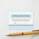 Ett roligt som du kan ta med i babyduschinbjudan som hälsar gästerna välkomna in i en raffel om de tar med sig en paket blöjor tillsammans med dem till babyduschen. Pastellernas baby blue och vita polkadotdesign är perfekt att koordinera med nästan vilken duschinbjudan från pojke som helst.