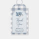 Blå babyskor Gingham pojkmössa Baby Shower Presentetikett