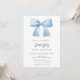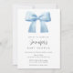 Fira en elegant baby shower med denna blåa båge-partajinbjudan, med en vacker akvarellillustration på en ren vit bakgrund. Perfekt för högt te, trädgårdsfester eller någon annan babyfirande - för att hedra den blivande mamman i sofistikerad stil.