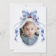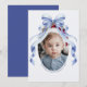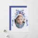 Skicka varma semesterhälsningar med detta vackra julkort med oval foto och blå slinga. Med en graciös akvarell blå slinga högst upp och en elegant oval fotoram är denna design perfekt för att visa upp ditt favorit familjefoto. Med sin klassiska och anpassningsbara stil är det ett idealiskt sätt att sprida julstämning samtidigt som du lägger till en personlig touch. Tryckt på papper av högsta kvalitet säkerställer detta kort en festlig och elegant presentation för dina högtidliga hälsningar.