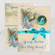 Elegant, färgrik, livfull vintageinspirerad design i turkosblått och vitt med en baby och en flygande stork av Bulgan Lumini (c). Lätt att anpassa med egen text för tillkännagivanden, save-the-date, tack-kort, baby shower, barnkalas eller nästan vilken händelse som helst!