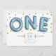 Blå ballonger Guldkonfetti ONE 1-års födelsedagsfe Inbjudningar