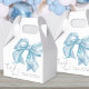 En söt och charmig presentlåda med en mjuk vit akvarellbåge placerad tydligt uppe till höger, vilket ger en klassisk och traditionell look som är perfekt för en könsneutral baby shower eller bröllopsfest med tema som "She's Tying the Knot" eller "Something Blue Before I Do". Nedre vänstra hörnet visar ett fetstilt "Tack!" i handskriven stil, medan nedre högra hörnet har ett litet område med en klassisk serif-teckensnitt där du kan lägga till ett personligt tack.