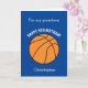 Ett blått personligt basketbollskort för 9-årsdag för sonson, son, brorson, etc. Du kommer enkelt att kunna anpassa framsidan med hans namn. Insidan innehåller ett födelsedagsmeddelande som du också enkelt kan redigera. Du kan anpassa baksidan av detta basketbollskort med året. Detta skulle bli en unik födelsedagspresent för barn som älskar basket.