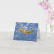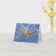 Blå, beige och guld tom anteckningskorta med uggla flygande i månskenet. Enkel kortdesign är perfekt som tack-kort eller bara för att säga hej. Mångsidig för teman med ladorugglor. Vis lada uggla under flygning med utsträckta vingar har beige och guld fläckar i vingarna. Mystisk midnatts skog med uggla flygande till sin sittplats är en perfekt present.