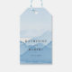 Blå bergsområde liggande Bröllop monogram Presentetikett