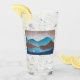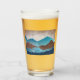 Ett vackert landskap med ett unikt struktur som visar ett blått bergslandskap med ett grumligt himlar och skuggor av brunt och mörk magenta.