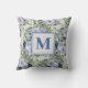 Blommigt av den blå och dammiga vattenfärgen på den vita dekoratorkudden i monogram. Anpassa med ditt första.