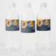 Blå, blå, rustig solrosfärg tryckt under höns vattenflaskor etikett