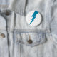 Enkel blå blixtformad geometrisk vektor på vit bakgrund. Ge blixtsnabbt, se ditt liv!