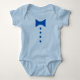 Den här roliga baby-skjortan för pojke har en bild av en blå buggslipning och fyra blå knappar.