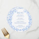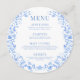 Blå blomkrans runt Menu-kort bröllop Meny