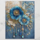 Blå Blomma Ädelstenar Junk Journal Scrapbook Pappe