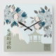 Blå blommar ro Oriental blommigt liggande konst Fyrkantig Klocka