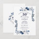 Denna eleganta, marinblå inbjudan till 50-års bröllopsdag kan anpassas med din information i modern typografi. Designad av Thisisnotme©