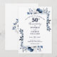Blå Blommig 50-årsdag Spara Datumet