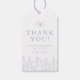 En charmig blå blommig presentetikett som är utformad för att komplettera ditt baby shower tema. Diskreta botaniska illustrationer ramar in ett mjukt “Tack” meddelande för en genomtänkt finish på förmånspåsar, gåvor eller festgodis. Personifiera med din text och fira i stil.
