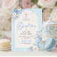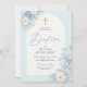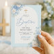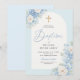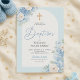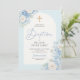 Blå Blommig Båge Dopinbjudan med Guld Kors Inbjudningar