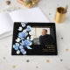 En svart och guld elegant blå blommig foto begravnings minnesstund firande av livet gästbok. Designad av Thisisnotme©