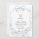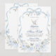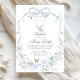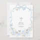 Blå Blommig Bow Coquette Dove Dopinbjudan, Blå Pojke Dopinbjudan, Redigerbar Silverkors Dopinbjudan
