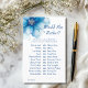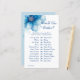 Gör din brudfest oförglömlig med detta eleganta Blå Blommiga "Would She Rather?"-spel, genomtänkt utformat för att ge skratt och kul till din fest. Med en vacker blå blomsterdräkt har detta spelkort en touch av sofistikering samtidigt som det ger en lättsam aktivitet för gästerna att gissa den blivande brudens preferenser. Helt anpassningsbart kan du enkelt justera spelinformationen och anpassa den med brudens namn och din evenemangsinformation för att perfekt matcha ditt tema. Detta charmiga och interaktiva spel kommer säkerligen att bli en skattad souvenir från den stora dagen. Fira med stil med detta personliga, eleganta spel som är lika förtjusande som det är minnesvärt!