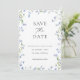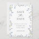 Blå Blommig Bröllopsfoto Spara Datum-kort Datumet
