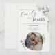 Förhöj din bröllopsbrevpapper med denna romantiska blåblommiga inbjudan, designad i en mjuk lyxstil som känns tidlös och elegant. Ömtåliga akvarellbotaniska detaljer, fladdrande fjärilar och raffinerade detaljer inramar era namn med en mjuk, redaktionell touch. Det anpassningsbara fotot lägger till ett personligt, intimt ögonblick samtidigt som den övergripande designen hålls polerad och sofistikerad. Perfekt för par som älskar en drömlik, romantisk estetik med en modern, högklassig finish. Anpassa dina detaljer för att skapa en inbjudan som känns vacker kuraterad för din dag.