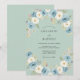 Denna design har ett charmigt arrangemang av blå och krämfärgade rosor, accentuerat med delikat grön lövverk. Konsten frammanar en mjuk, romantisk atmosfär perfekt för en vår- eller sommarfirande. De akvarellinspirerade blommorna skapar en målerisk men ändå eterisk känsla.
