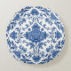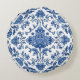 Blå Blommig Chinoiserie Vit Akvarell Rund Kudde