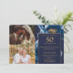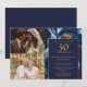Denna eleganta marinblåa och gyllene blommiga 50-års bröllopsdag-inbjudan kan anpassas med din information i modern typografi och två speciella foton. Designad av Thisisnotme©