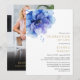 Denna eleganta, akvarell blå blomsterfirande av livet och minneshögtidlig inbjudan kan anpassas med din information i modern typografi och foto på baksidan. Designad av Thisisnotme©