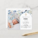 Blå blommig fotobåge pojke Dop inbjudan