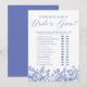 Det blå blomstermönstrade "Gissa vem som sa det" Brud eller Brudgum-spelet är ett förtjusande och underhållande tillägg till din bröllopsfest. Det här spelet lägger till en touch av elegans med sin vackra blå blomsterdesign, vilket skapar en visuellt tilltalande och engagerande aktivitet för gästerna.