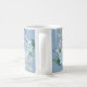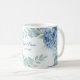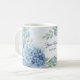 Blå Blommig Grönblad Ram Bröllopsfest Kaffemugge. Unik, vacker, stilren design. Lätt att anpassa. Typsnitt, storlek och färger kan ändras. Matchande artiklar finns.