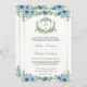 Blå Blommig Guld Katolsk Kors QR-kod Bröllop Inbjudningar