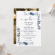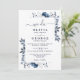 Denna eleganta 'vi gör' marinblå och vita blomsterbröllopsinbjudan kan anpassas med din information i modern typografi och ett speciellt foto på baksidan. Designad av Thisisnotme©