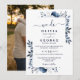 Blå Blommig Intim Privat Bröllopsfoto Inbjudningar