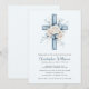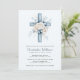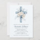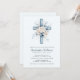 Blå Blommig Kors Dop Inbjudan