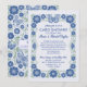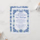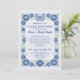 Denna personliga inbjudan till årsdags-kort shower är utformad för att vara värd för en shower via post, och inbjuder familj och vänner att skicka årsdagskort till ett speciellt par som firar en stor årsdag. Den handritade designen har en retroinspirerad Talavera-stil blomstergränsram med en detaljerad fjäril högst upp, skapad i vackra blå färger, med en rymlig mittarea för anpassningsbar text så att du kan lägga till namn, årsdag, festdetaljer, adress och instruktioner för när och var korten ska skickas. Baksidan av inbjudan visar en samordnad förlängning av blomstermotivet för en sammanhängande, konstnärlig presentation. Perfekt för 25-årsjubileum, 40-årsjubileum, 50-års guldjubileum eller någon annan stor firning där nära och kära hedrar paret på distans, är denna anpassade inbjudan till årsdags-kort shower idealisk för långdistansfamilj, virtuella firanden, överraskningsjubileumshyllningar och minnesprojekt, och tilltalar köpare som söker inbjudan till årsdags-kort shower, shower via post årsdagsin