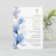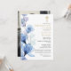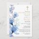Denna eleganta blå blomstergestaltade kristna firande av liv och minnesinbjudan kan anpassas med din information i klassisk typografi och ett foto av din älskade på baksidan. Designad av Thisisnotme