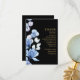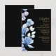 Ett svart och guld elegant tackkort för begravning dekorerat med blå blommor, personligt anpassat med ditt eget tackmeddelande. Designad av Thisisnotme©