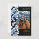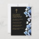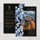 Svarta och gyllene fotobegravnings-kort med kondoleans och minnesbön med eleganta blå blommor. Du kan anpassa den med din valda bön eller dikt om du föredrar. Designad av Thisisnotme©