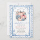 Elegant Blå Chinoiserie Trädgård Rosa Blommig Bröllopsdusch Inbjudan