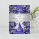 Bröllopsjubileum inbjudan. Silver & blå blommig med vit juvel slinga. Exklusiv Zazzle. Anpassa med dina egna detaljer. OBS! Alla platta bilder! De har INTE riktiga slingor, diamanter eller juveler!!
