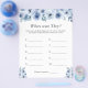 Letar du efter en unik och rolig aktivitet för din bröllopsfest? Leta inte längre än vårt Dammiga Blå Blommiga Var Var Var Bröllopsfestspel! Det här spelet är ett bra sätt att få dina gäster att interagera och dela historier om det lyckliga paret. Det här spelet är perfekt för alla blivande brudar och kommer att lägga till en speciell touch till din fest.