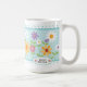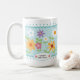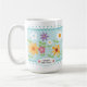 Visa din mamma hur mycket hon betyder för dig på mors dag eller vilken dag som helst med denna anpassningsbara kaffemugg som har färgglada blommor, söta blåfåglar, lekfulla prickar och trendiga kantbårder. Den livfulla blå, gula och lila färgpaletten lägger till en glad touch, medan den anpassningsbara texten låter dig lägga till ett namn eller annan känsla. Oavsett om det är till mors dag, en födelsedag eller någon speciell tillställning, är denna mugg det perfekta sättet att visa din kärlek och uppskattning. Skapa en unik gåva som kommer att lysa upp din mammas dag.